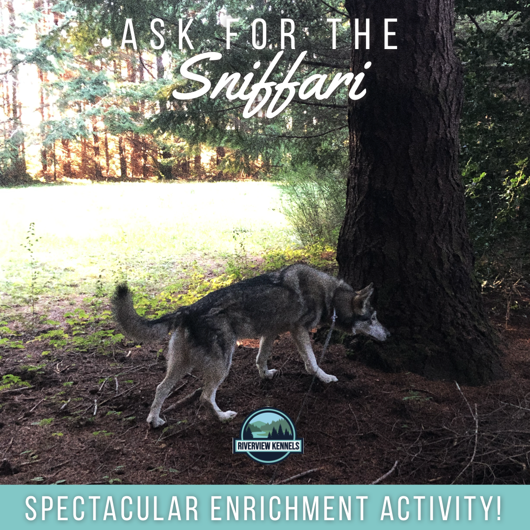 Dogs receive an enormous amount of information through their noses- that’s how they are wired. A Sniffari is an adventure led by the nose. Inside Sniffaris use a variety of snuffle mats in an enclosed area. Outside Sniffaris capitalize on the vast outdoor space in our forest.