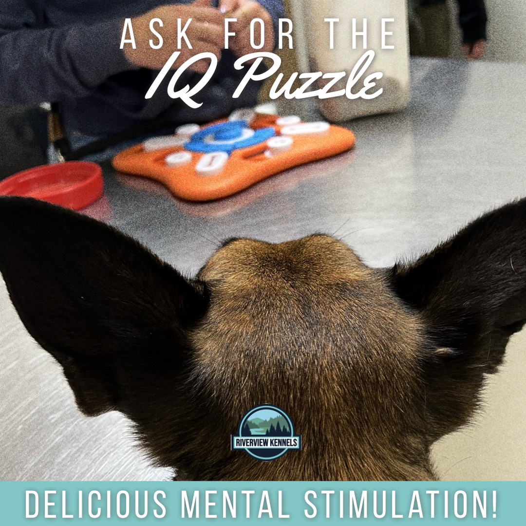 Your dog is smart and their brains deserve to be exercised. The IQ Puzzle is a perfect way to combine their food motivation and their need for mental activity. Each of our IQ Puzzles are rated with different levels of difficulty so we can find the perfect fit for your pooch.