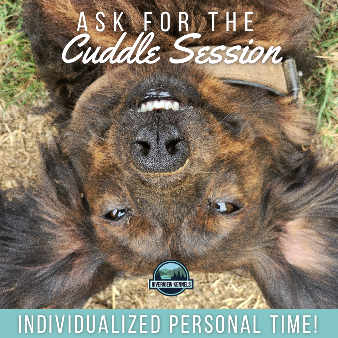 For the aging dog or the inactive dog, a cuddle session may hit the mark. This 1-on-1 time will come with plenty of petting, lots of belly rubs, and is the perfect place for great pictures.