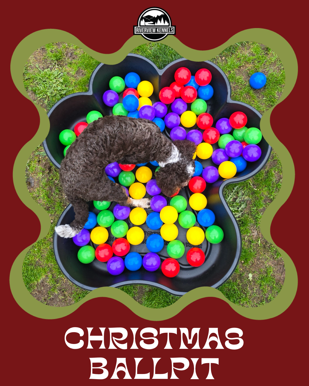 The Christmas Ballpit is a hoot! It starts with a paw-shaped pool filled with colorful balls. Then we scatter a few of your furry friend’s favorite treats amongst the balls. Now the sniffing begins. Not only does this create wonderful photos, but it’s also excellent for exposing your dog to new sights, sounds, and textures.