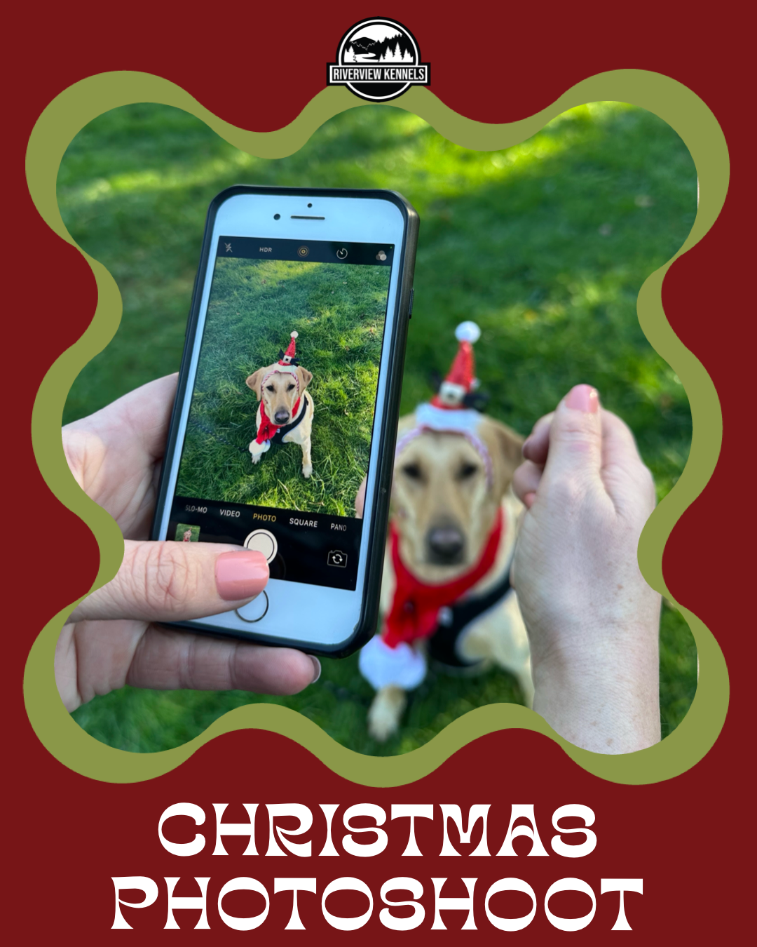 If you follow us on social media you know that our team is quite talented with their photography skills. We gathered a few fun Christmas costume items to host a fun photo shoot. We will spend some hilarious one on one time with your pup and capture a few fun pics you can print and place on your fridge.