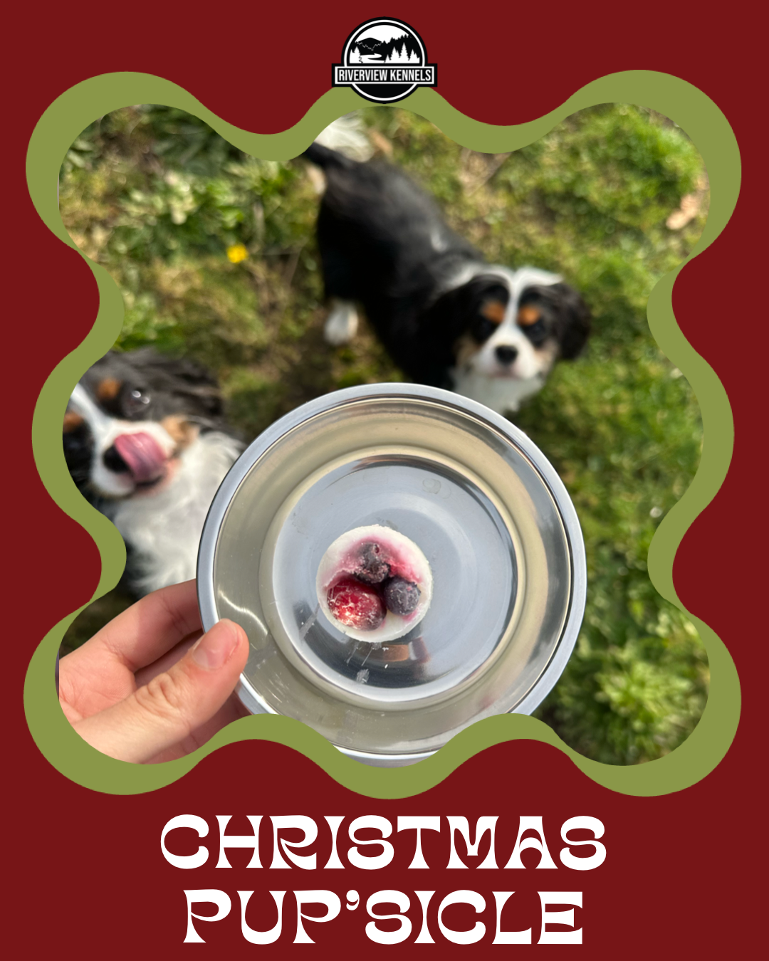 You won’t believe how delicious the Frosty Pup’sicle is. It starts with a yogurt base and combines a mixture of either frozen blueberries, frozen cranberries, or frozen apples. It’s the perfect Christmas finish that’s sweet and nutritious.